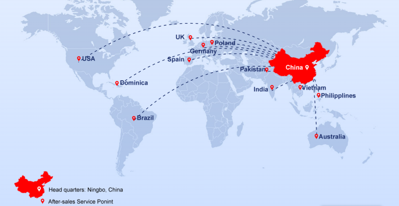 Công ty hiện có ba cơ sở sản xuất tại Beilun và Cixi, Ninh Ba, có diện tích 388 mẫu Anh và diện tích nhà máy hơn 400.000 mét vuông, và giá trị sản lượng của nó sẽ vượt 13 tỷ RMB vào năm 2023.